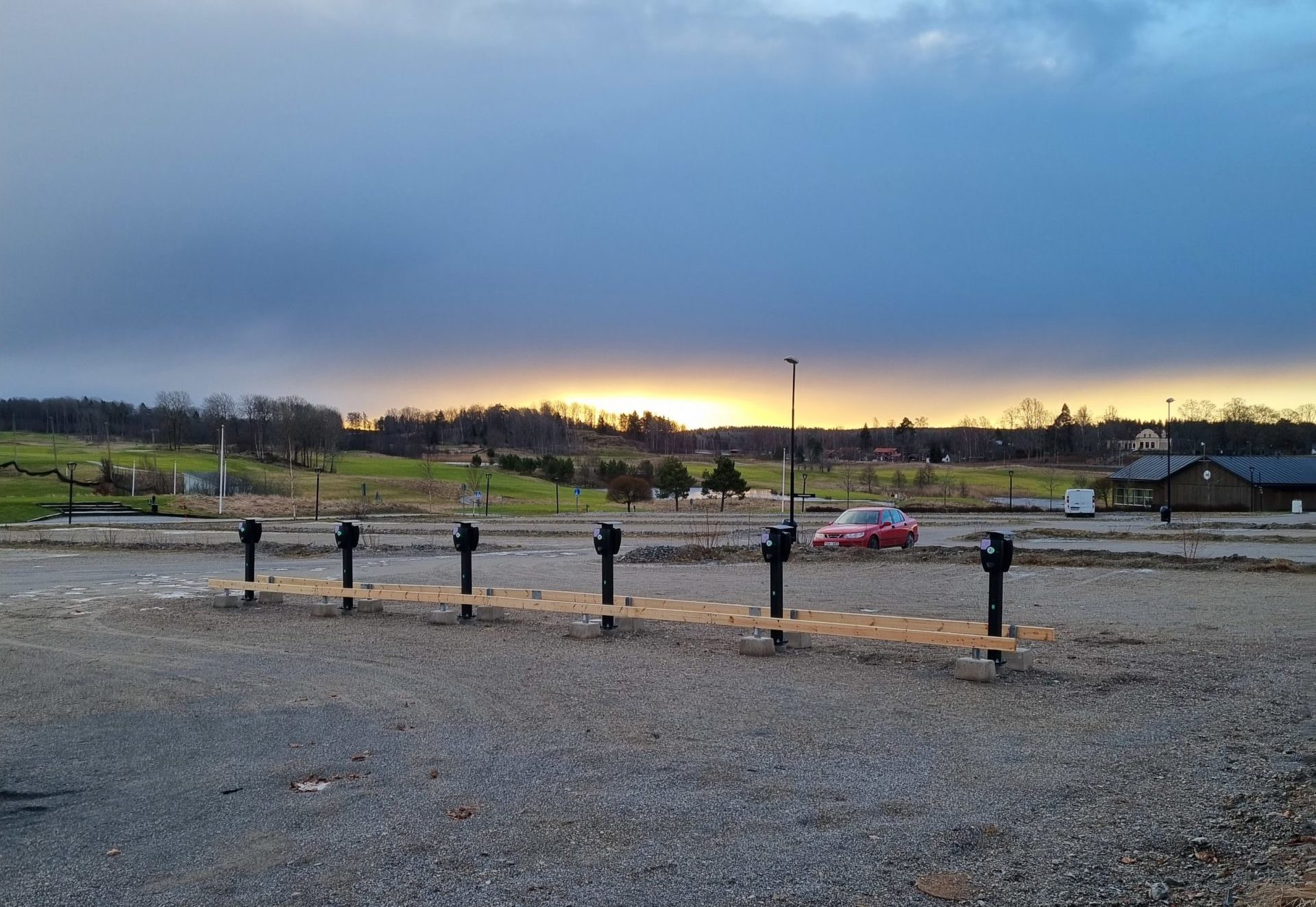I december påbörjades det praktiska arbetet hos oss på Vidbynäs Gård att förbereda och installera laddstolpar.